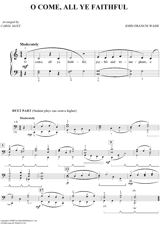 Digital Sheet Music for O Come, All Ye Faithful by John Francis Wade, Carol Matz scored for Piano; id:453926