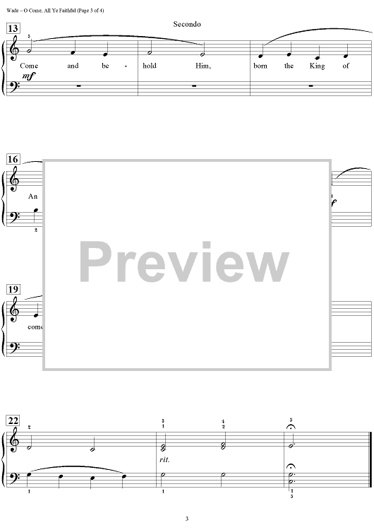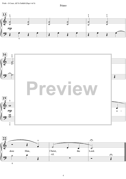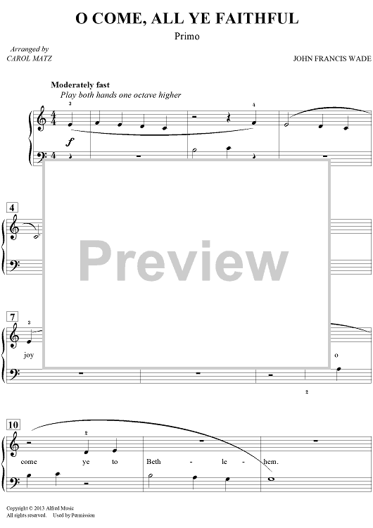 Digital Sheet Music for O Come, All Ye Faithful by John Francis Wade, Carol Matz scored for 1 Piano, 4 Hands; id:454152