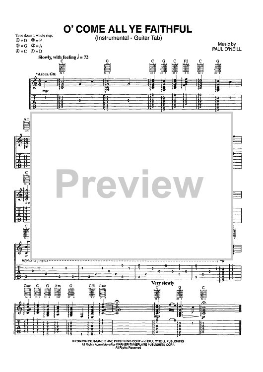 Digital Sheet Music for O' Come All Ye Faithful by Trans-Siberian Orchestra, Paul O'Neill scored for Guitar Tab; id:465671