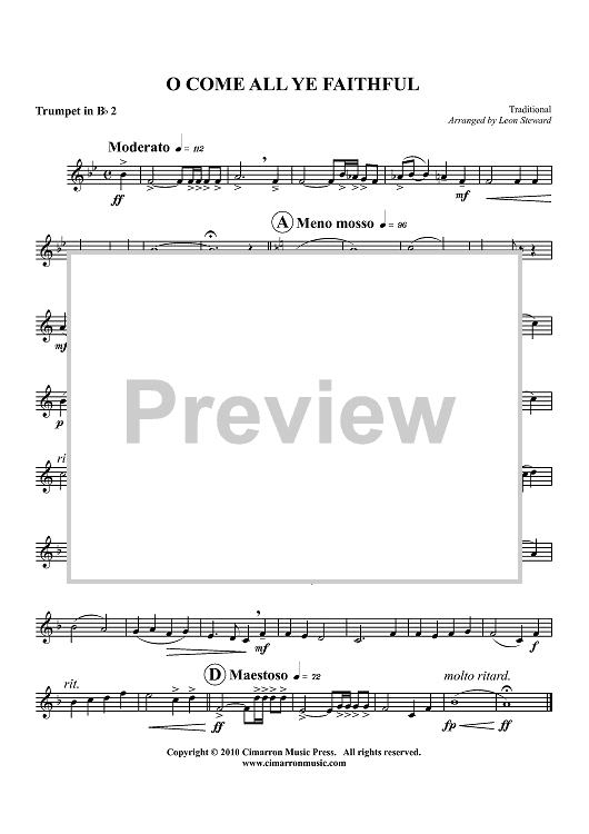 Digital Sheet Music for O, Come All Ye Faithful - Trumpet 2 in Bb by , Traditional, Leon Steward scored for Brass Quintet; id:416700