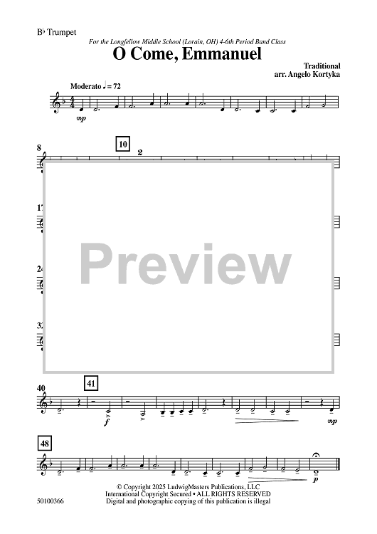 Digital Sheet Music for O Come, Emmanuel - Bb Trumpet by Traditional, Angelo Kortyka scored for Concert Band; id:509334