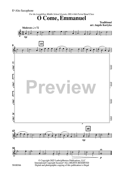 Digital Sheet Music for O Come, Emmanuel - Eb Alto Saxophone by Traditional, Angelo Kortyka scored for Concert Band; id:509331