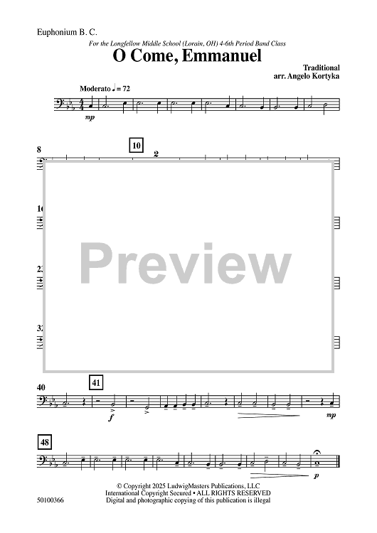 Digital Sheet Music for O Come, Emmanuel - Euphonium BC by Traditional, Angelo Kortyka scored for Concert Band; id:509338