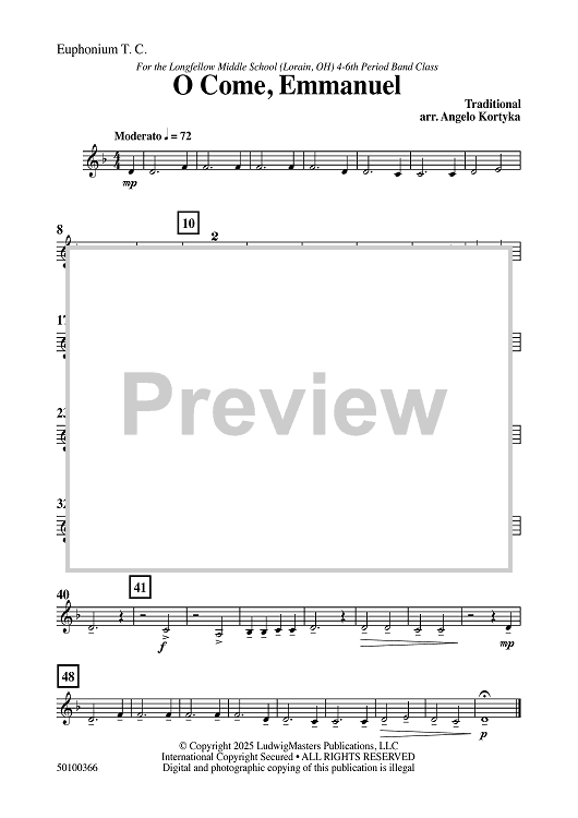 Digital Sheet Music for O Come, Emmanuel - Euphonium TC by Traditional, Angelo Kortyka scored for Concert Band; id:509337