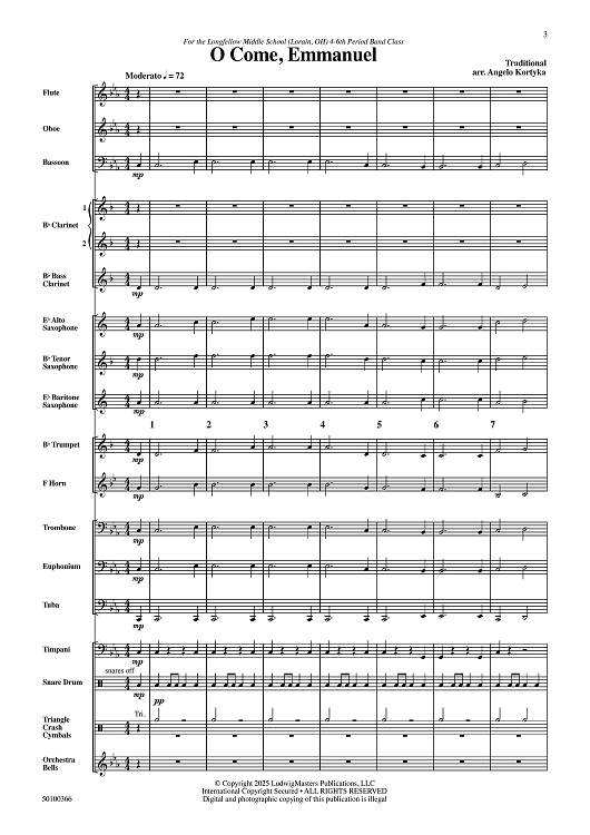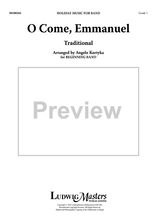 Digital Sheet Music for O Come, Emmanuel - Full Score by Traditional, Angelo Kortyka scored for Concert Band; id:509324
