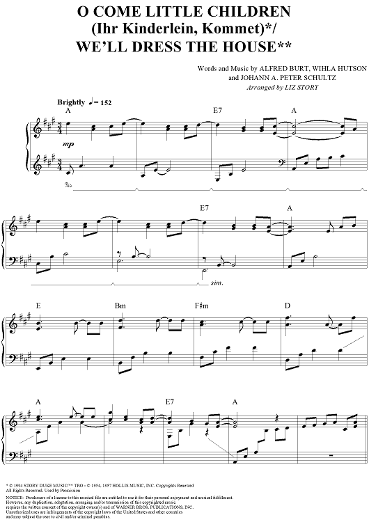 Digital Sheet Music for O Come Little Children/We'll Dress The House by Liz Story, Alfred Burt, Wihla Hutson, Johann Abraham Peter Schulz scored for Piano Solo; id:241881