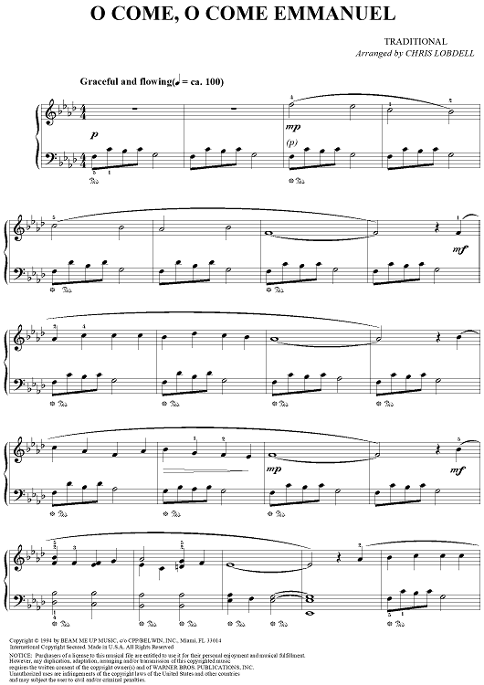 Digital Sheet Music for O Come, O Come Emmanuel by Chris Lobdell, Traditional scored for Easy Piano; id:118708
