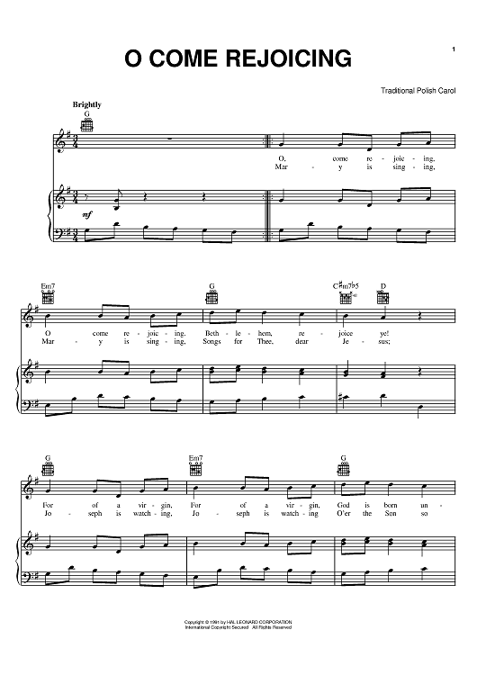 Digital Sheet Music for O Come Rejoicing by scored for Piano/Vocal/Chords; id:372071