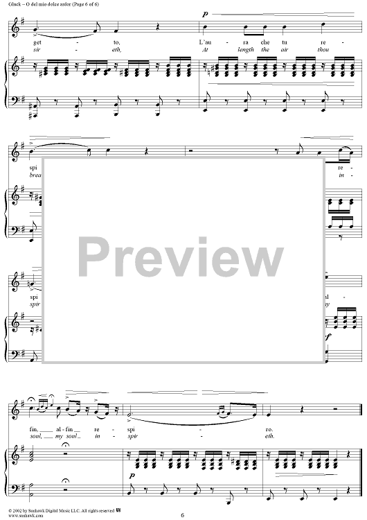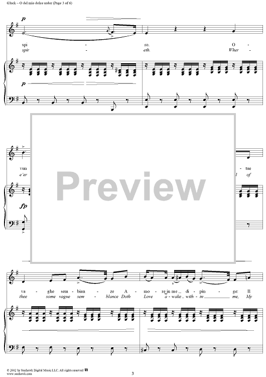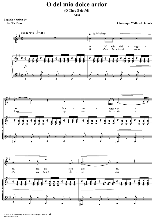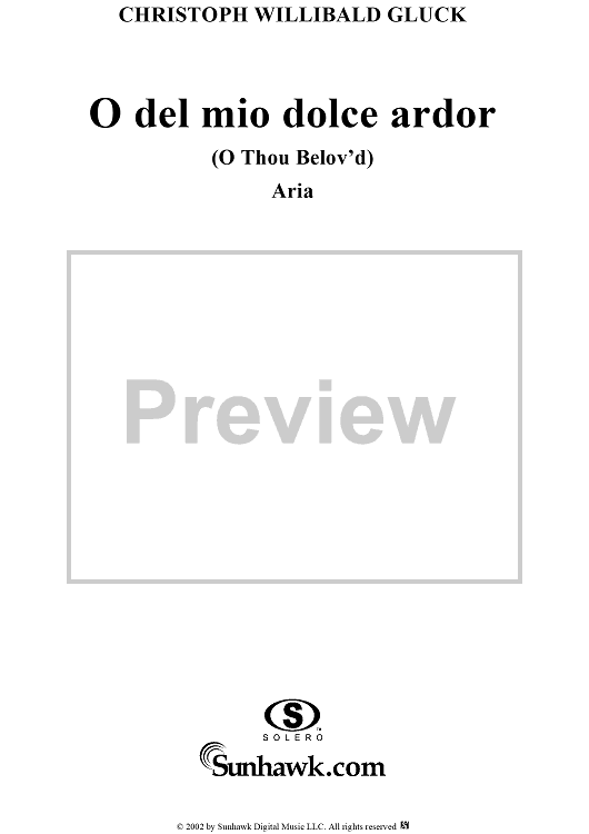 Digital Sheet Music for O del mio dolce ardor (O Thou Belov'd) by Christoph Willibald Glück scored for Voice/Piano; id:268371