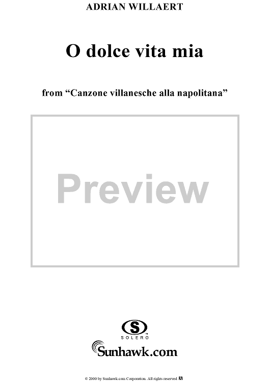 Digital Sheet Music for O dolce vita mia, from "Canzone villanesche alla napolitana" (Venice, 1545) by Adrian Willaert scored for Four-part Mixed Chorus; id:276834