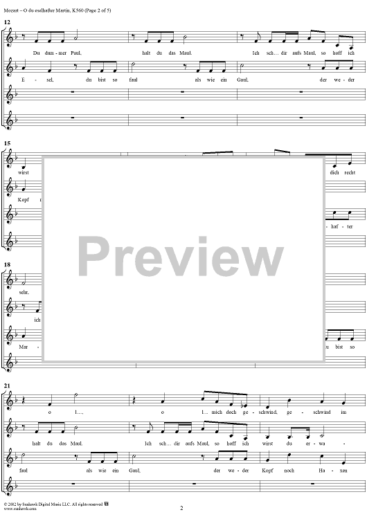 "O du eselhafter Martin, four voice canon in F Major, K560" Sheet Music by Wolfgang Amadeus Mozart