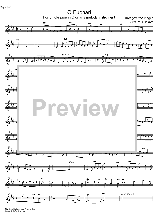 Digital Sheet Music for O Euchari by , Hildegard von Bingen, Poul Hoxbro scored for D Pipe or any Instrument; id:323231