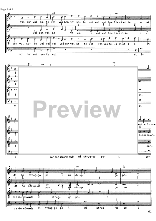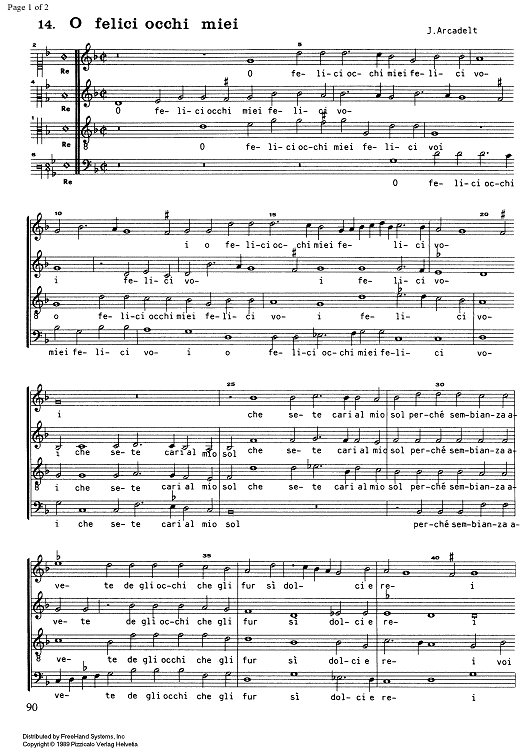 "O felici occhi miei from 20 Madrigali - Score" Sheet Music by Jacques Arcadelt