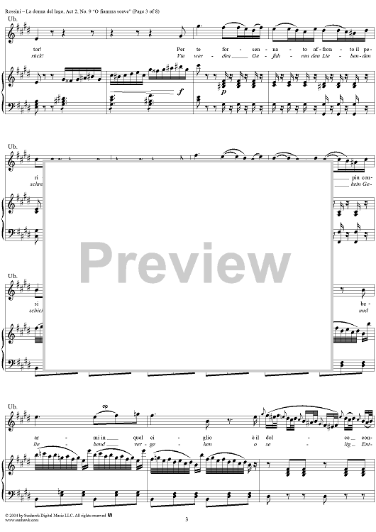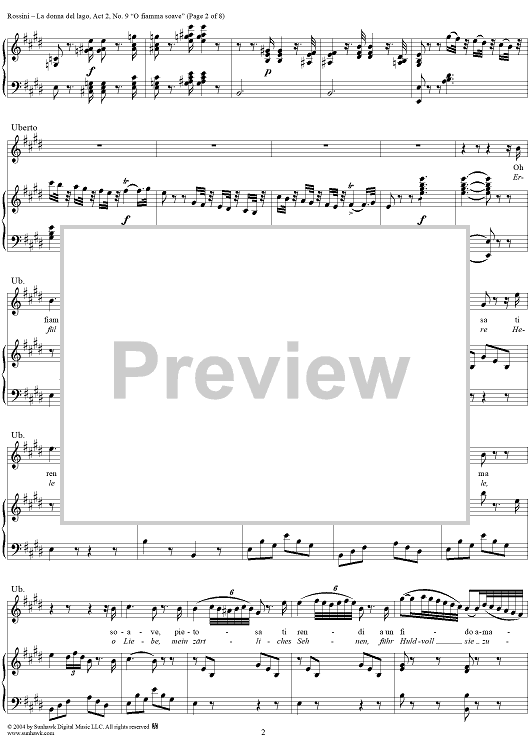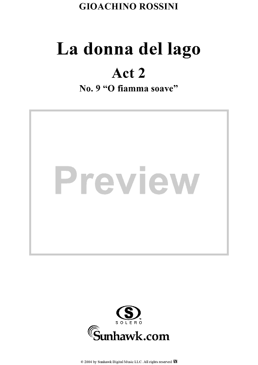 Digital Sheet Music for O fiamma soave: No. 9 from "La donna del lago", Act 2 - Score by Gioachino Rossini scored for Voice/Piano; id:303445