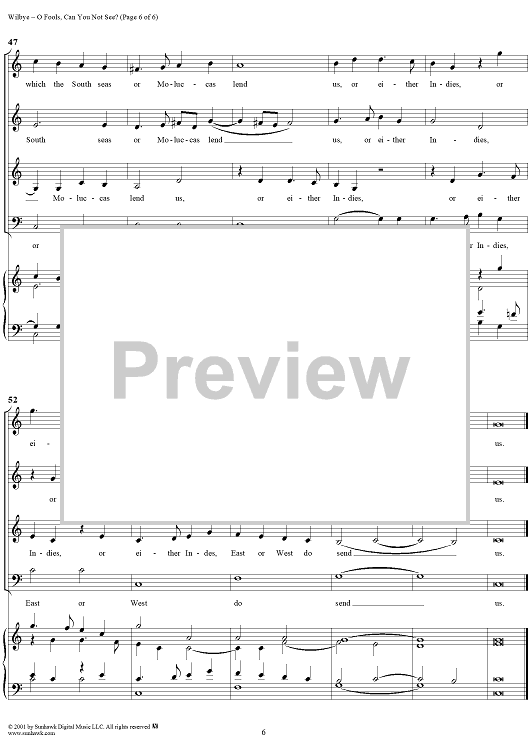"O Fools, Can You Not See?" Sheet Music by John Wilbye