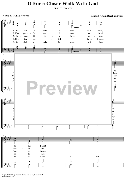 Digital Sheet Music for O For a Closer Walk with God by William Cowper, John Bacchus Dykes scored for Four-part Mixed Chorus; id:113754