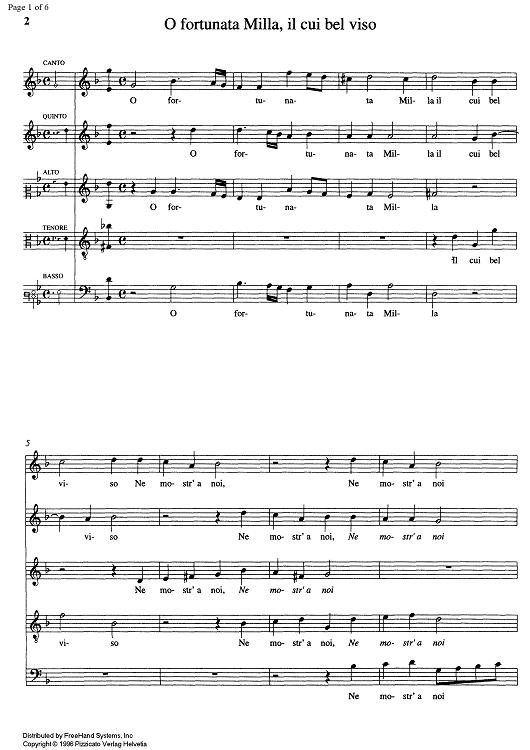 "O fortunata Milla, il cui bel viso" Sheet Music by Alessandro Orologio