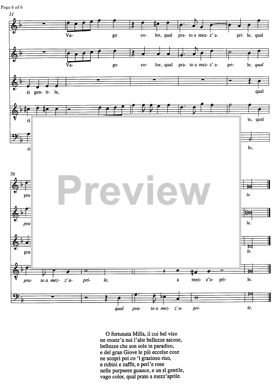 Digital Sheet Music for O fortunata Milla, il cui bel viso by , Alessandro Orologio scored for SATB Choir; id:333821