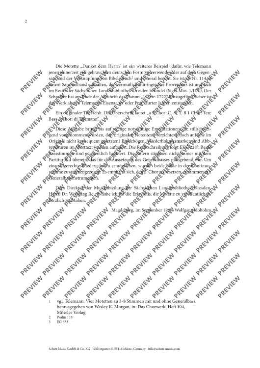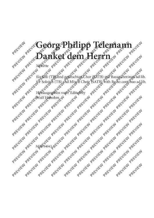 Digital Sheet Music for O give thanks to the Lord, for he is good - Choral Score by Georg Philipp Telemann scored for Soloists (tb), Mixed Choir (satb) And Basso Continuo; id:505568
