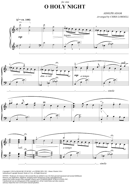 Digital Sheet Music for O Holy Night by Chris Lobdell, Adolphe Adam scored for Piano Solo; id:277657