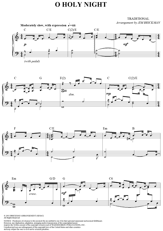 Digital Sheet Music for O Holy Night by Jim Brickman, Traditional scored for Piano Solo; id:286235
