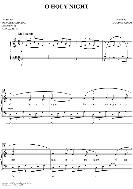 Digital Sheet Music for O Holy Night by Placide Cappeau, Carol Matz, Adolphe Adam scored for Piano; id:453940