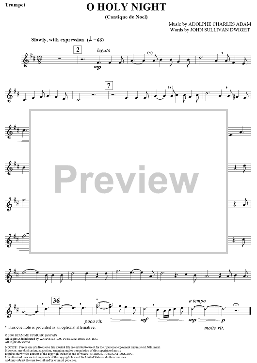 "O Holy Night - Trumpet" Sheet Music by Adolphe Adam