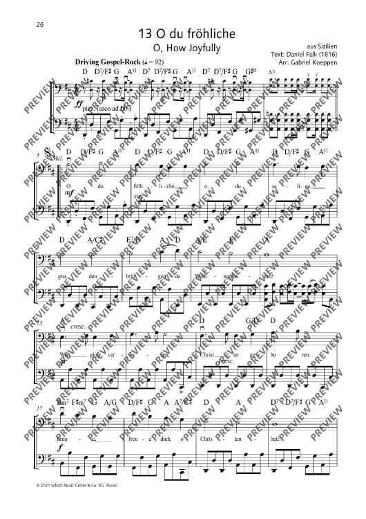 Digital Sheet Music for O, How Joyfully by Gabriel Koeppen scored for 1-2 Cellos (piano Ad Libitum); id:496564