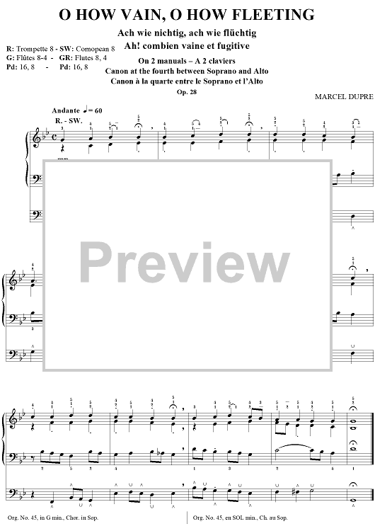 Digital Sheet Music for O How Vain, O How Fleeting, from "Seventy-Nine Chorales", Op. 28, No. 3 by Marcel Dupre scored for Organ Solo; id:270902