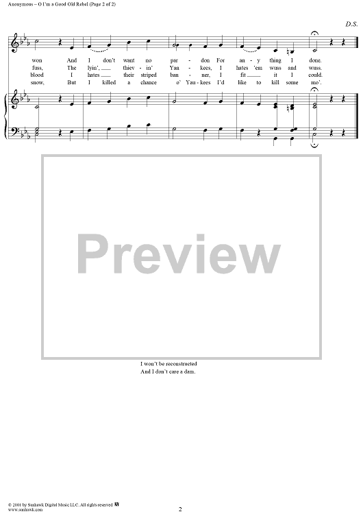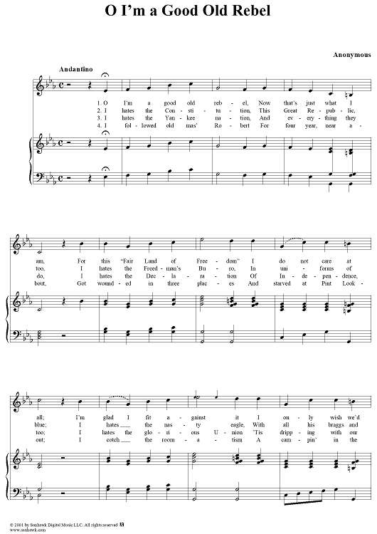 "O I'm A Good Rebel" Sheet Music by Unknown Writer