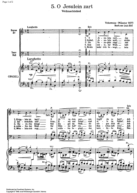 Digital Sheet Music for O Jesulein zart by , Louis Dité, Traditional scored for Choir/Organ; id:337643