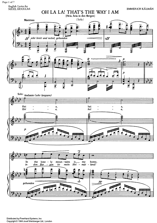 "O La La! That's the Way I Am" Sheet Music by Emmerich Kalman