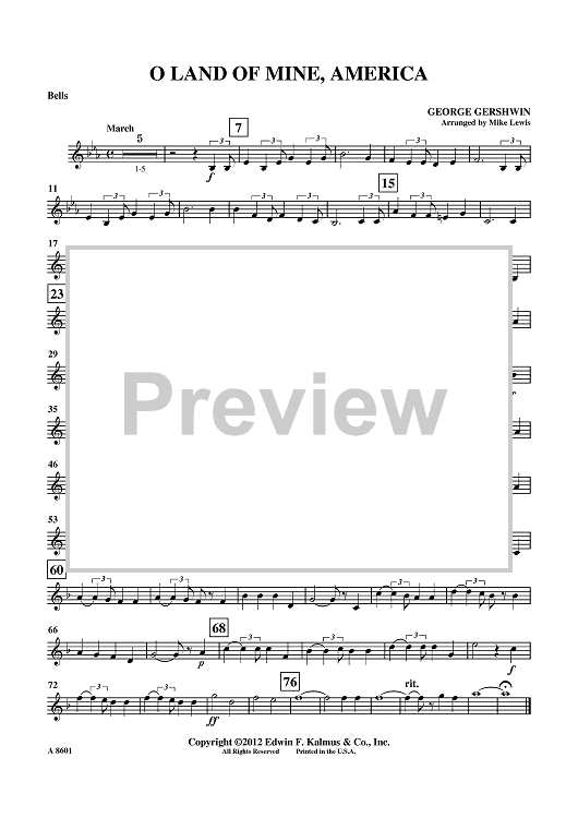 Digital Sheet Music for O Land Of Mine, America - Bells by , George Gershwin, Mike Lewis scored for Full Orchestra; id:458310