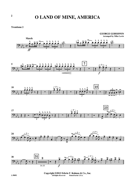 "O Land Of Mine, America - Trombone 2" Sheet Music by George Gershwin
