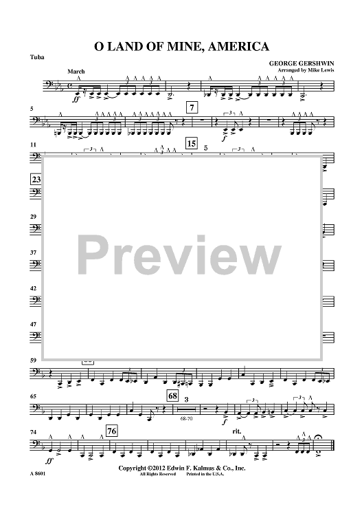 "O Land Of Mine, America - Tuba" Sheet Music by George Gershwin
