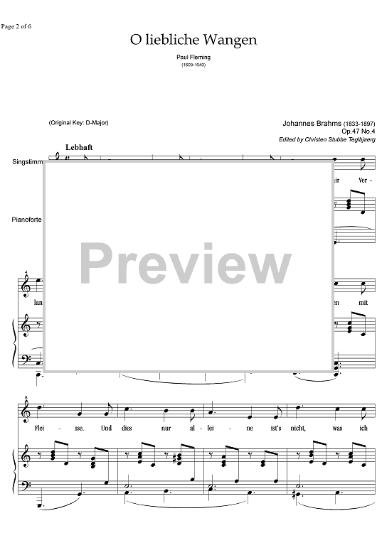 "O liebliche Wangen Op.47 No. 4" Sheet Music by Johannes Brahms