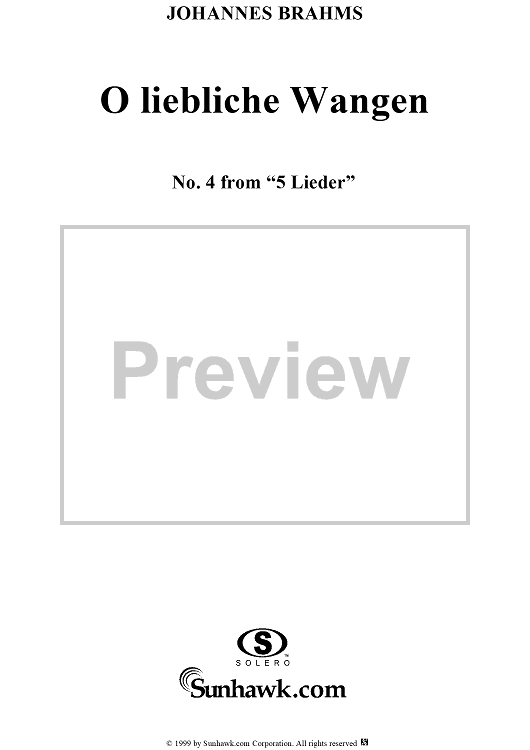 "O Liebliche Wangen" Sheet Music by Johannes Brahms
