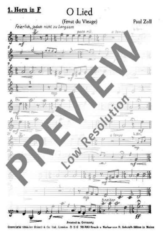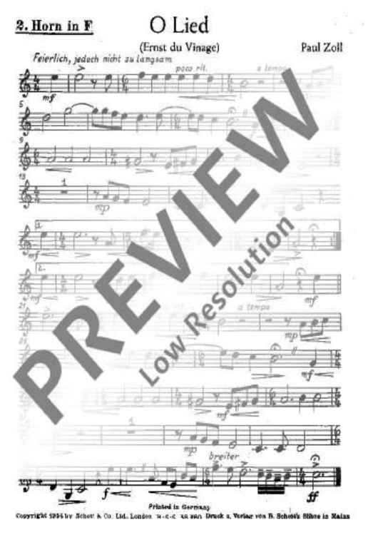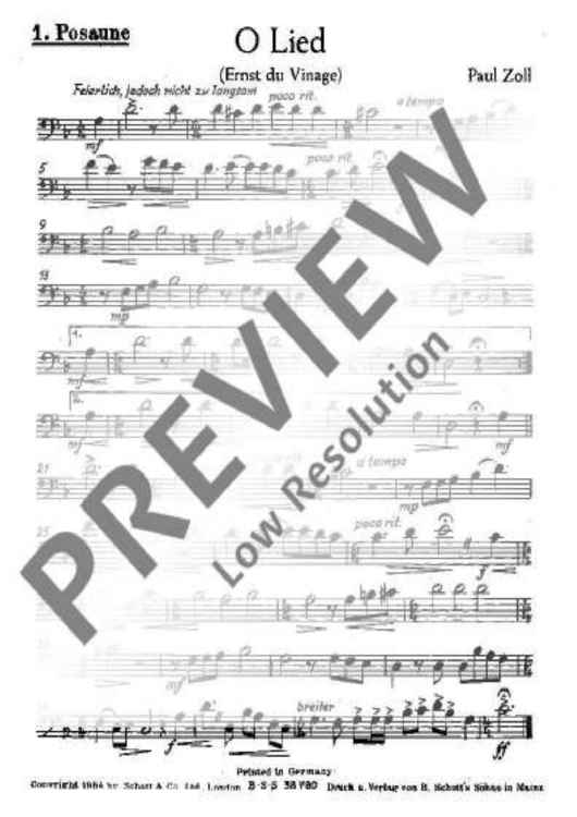Digital Sheet Music for O Lied - Set of Parts by Paul Zoll scored for Men's Choir, Wind Instruments And Piano; id:488899