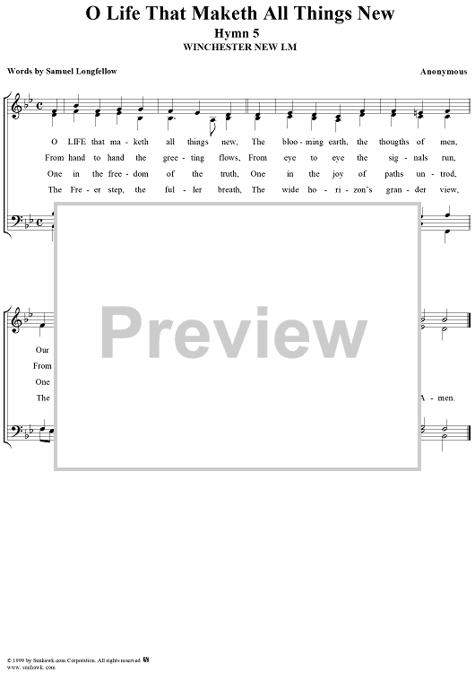 Digital Sheet Music for O Life That Maketh All Things New by Unknown Writer scored for Four-part Mixed Chorus; id:277117