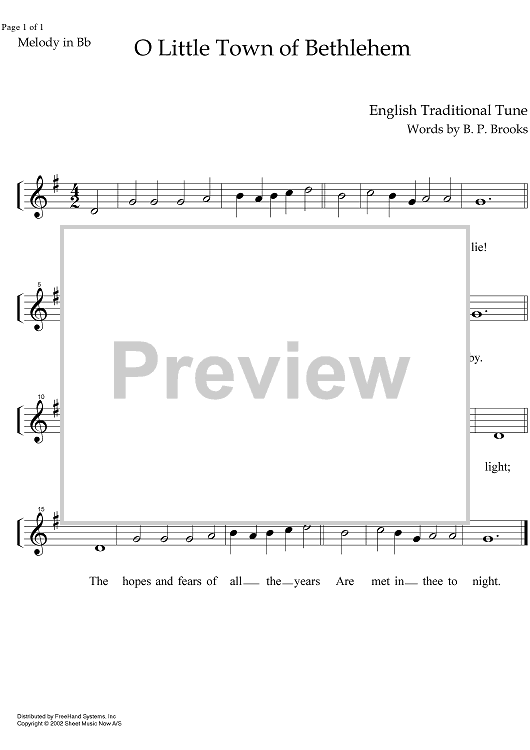Digital Sheet Music for O Little Town of Bethlehem - B-flat Instrument by Traditional scored for Piano/Vocal; id:337550