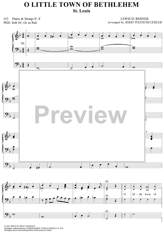 "O Little Town of Bethlehem" Sheet Music by Lewis H. Redner