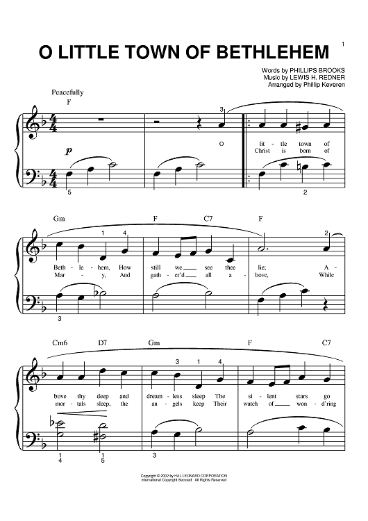 Digital Sheet Music for O Little Town Of Bethlehem by Phillips Brooks, Lewis H. Redner, Phillip Keveren scored for Big Note Piano; id:396841