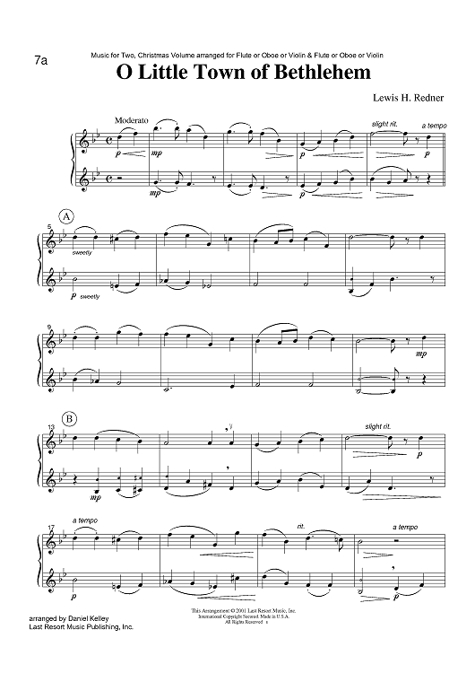 "O Little Town of Bethlehem" Sheet Music by Lewis H. Redner