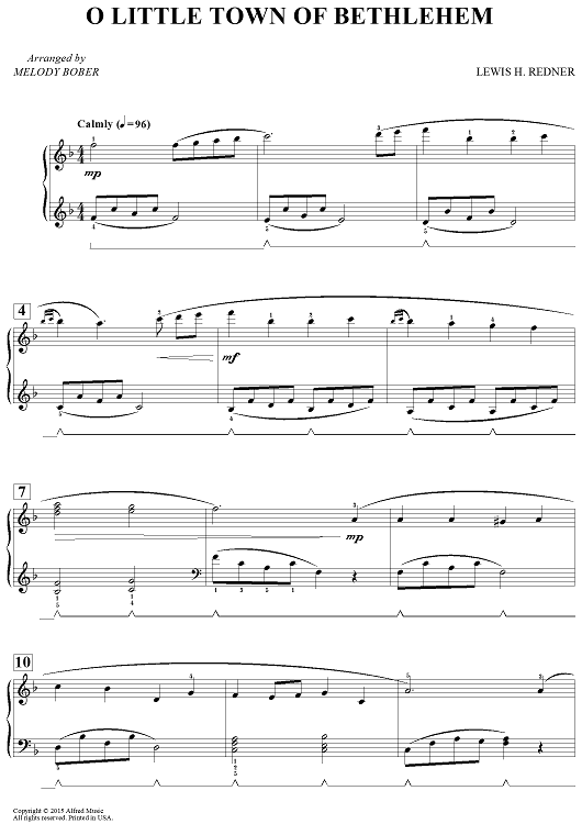 Digital Sheet Music for O Little Town Of Bethlehem by Lewis H. Redner, Melody Bober scored for Piano; id:458950