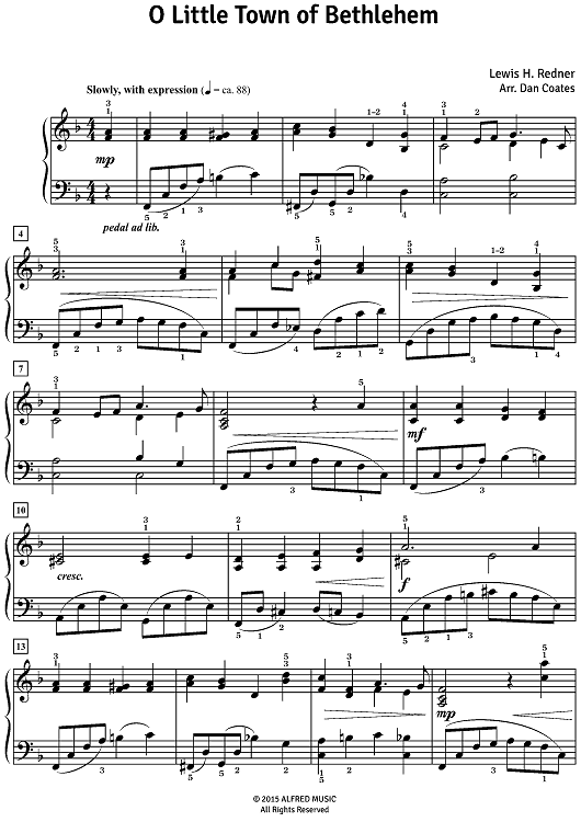 Digital Sheet Music for O Little Town of Bethlehem by Dan Coates, Lewis Redner scored for Piano Solo; id:501181