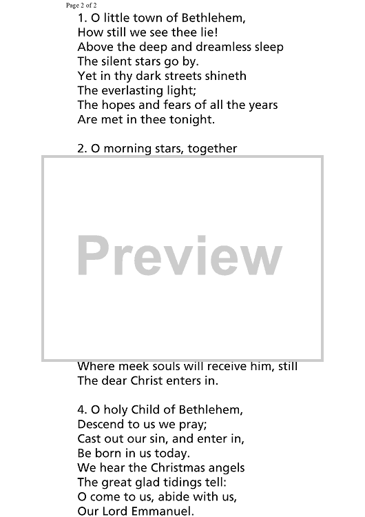 "O Little Town of Bethlehem - Score" Sheet Music by Traditional