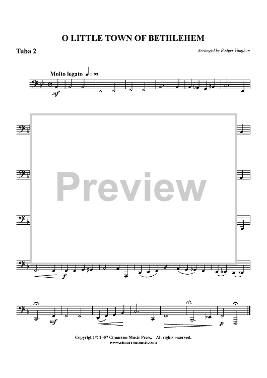 Digital Sheet Music for O Little Town of Bethlehem, - Tuba 2 by Rodger Vaughan, Traditional scored for Tuba Quartet; id:413556