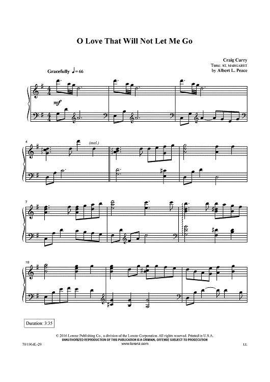 "O Love That Will Not Let Me Go" Sheet Music by Albert Lister Peace