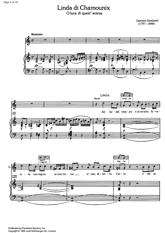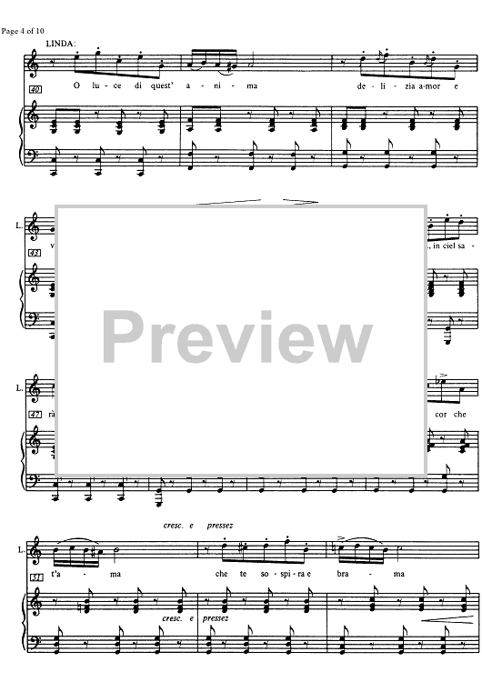 Digital Sheet Music for O luce di quest' anima from Linda di Chamounix by Gaetano Donizetti scored for Soprano/Piano; id:332301