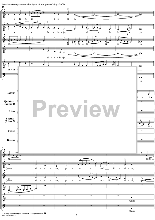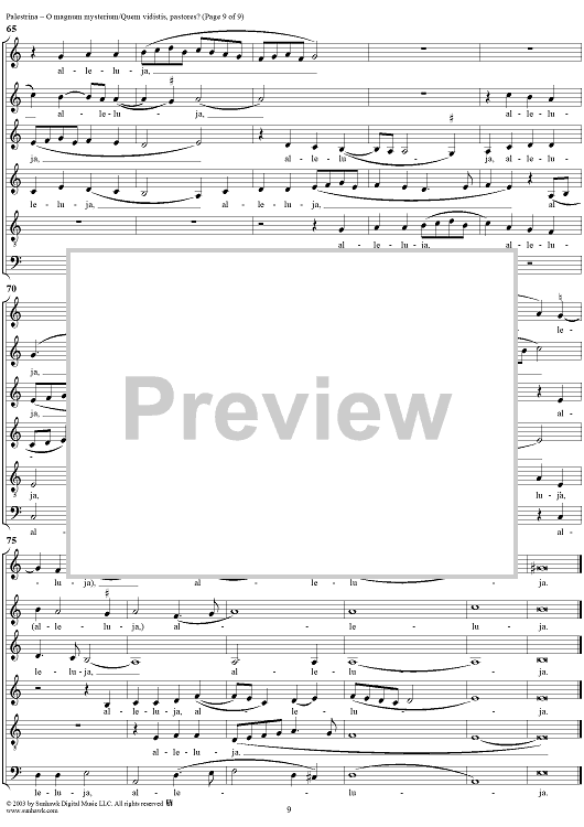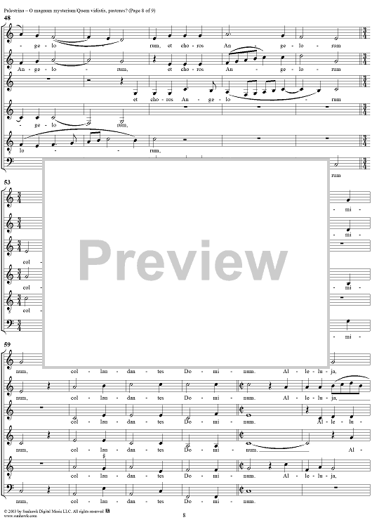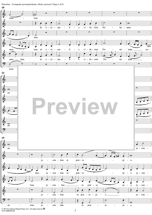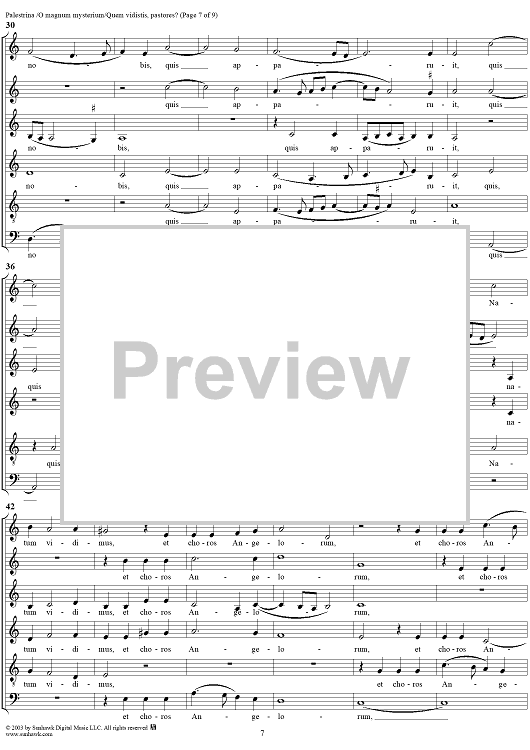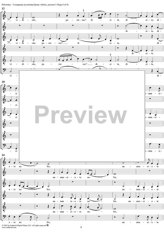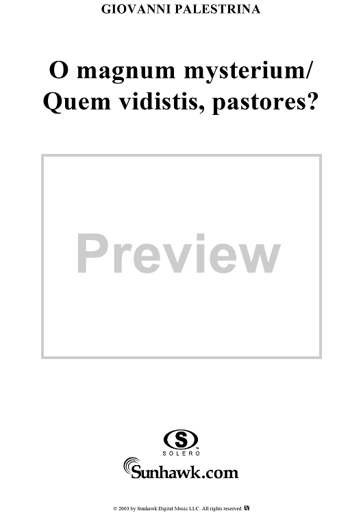 Digital Sheet Music for O magnum mysterium / Quem vidistis pastores by Giovanni Pierluigi da Palestrina scored for Six-part Mixed Chorus; id:254156